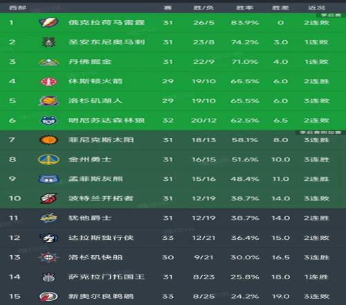 北京时间12月28日,今日的NBA常规赛继续进行,马刺、掘金、森林狼这些排名靠前的球队都输球,我们看看西部的最新排名!