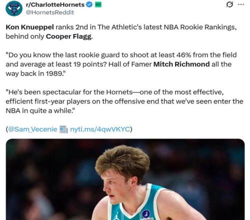 克努佩尔这样的表现,也让其大学时期的队友弗拉格感到压力,后者作为“美国之子”与25年状元,目前领跑最佳新秀榜。